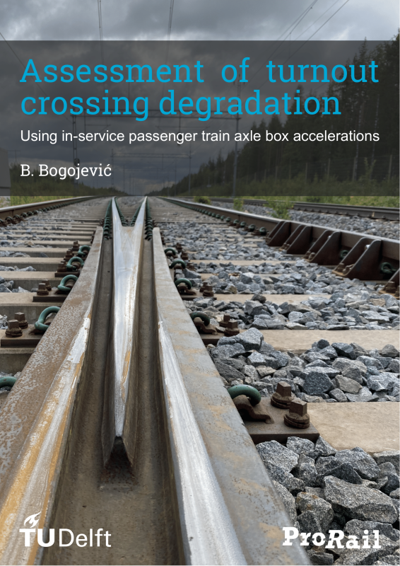 Description: Turnouts introduce flexibility into railway networks but are relative sensitive railway components. Rising demand for capacity, higher speeds, higher axle loads and less time for maintenance pressures the reliability of turnouts. Especially a fixed crossing that facilitates the physical intersection of two rails is vulnerable. It contains a discontinuity that causes large impact forces potentially leading to an abrupt failure and large disruptions. This gives rise to the question if failures and the following disruptions can be prevented or mitigated by timely maintenance. Passenger trains cover a large extend of the Dutch network at a daily basis and therefore they can serve as a platform for frequent infrastructure monitoring. A potential infrastructure monitoring technology that is applicable to retrofit is on passenger trains is Axle Box Accelerations. By having two intercity trains of NS retrofitted with this system, an assessment method is developed to determine the crossing health based on measurements conducted by in-service passenger trains.